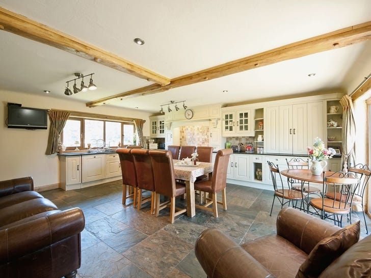 Kitchen/dining room: With Aga, microwave, fridge, freezer and dishwasher.