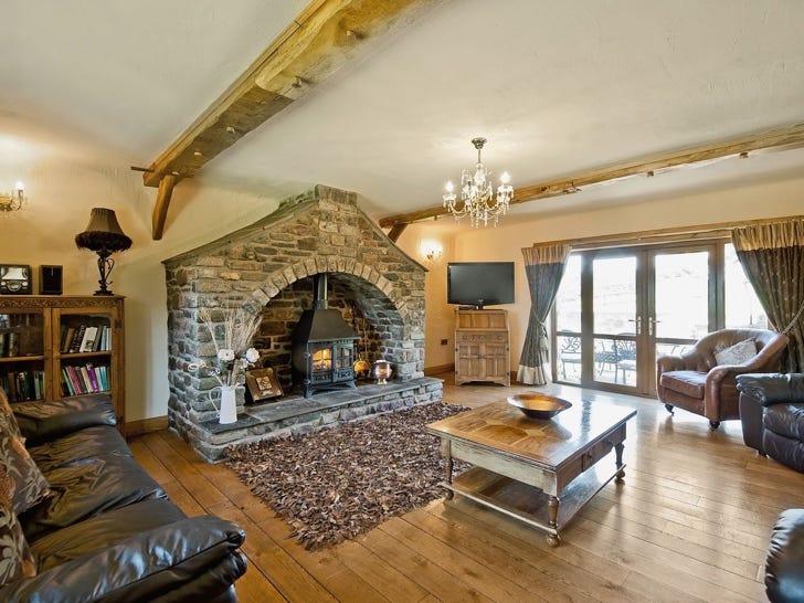 Living room: With wood burner, satellite TV, DVD player with a selection of DVDs, CD player and French door leading to patio.